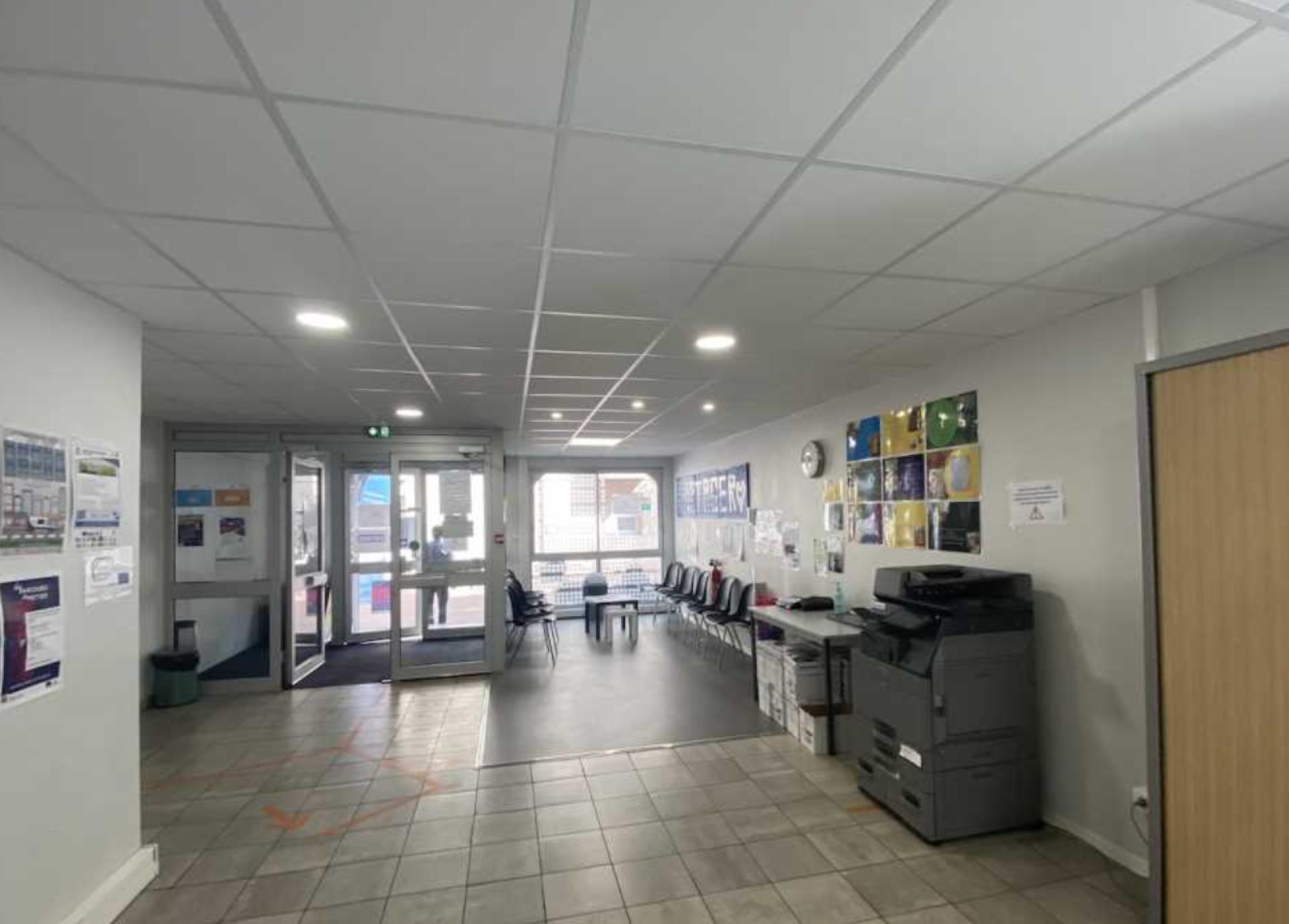 À louer, locaux d’activités de 550 m² avec 377 m² de bureaux à l’étage, 173 m² d’ateliers en RDC, ascenseur, 2 portes sectionnelles et 30 places de parking sur terrain clos de 3 000 m².