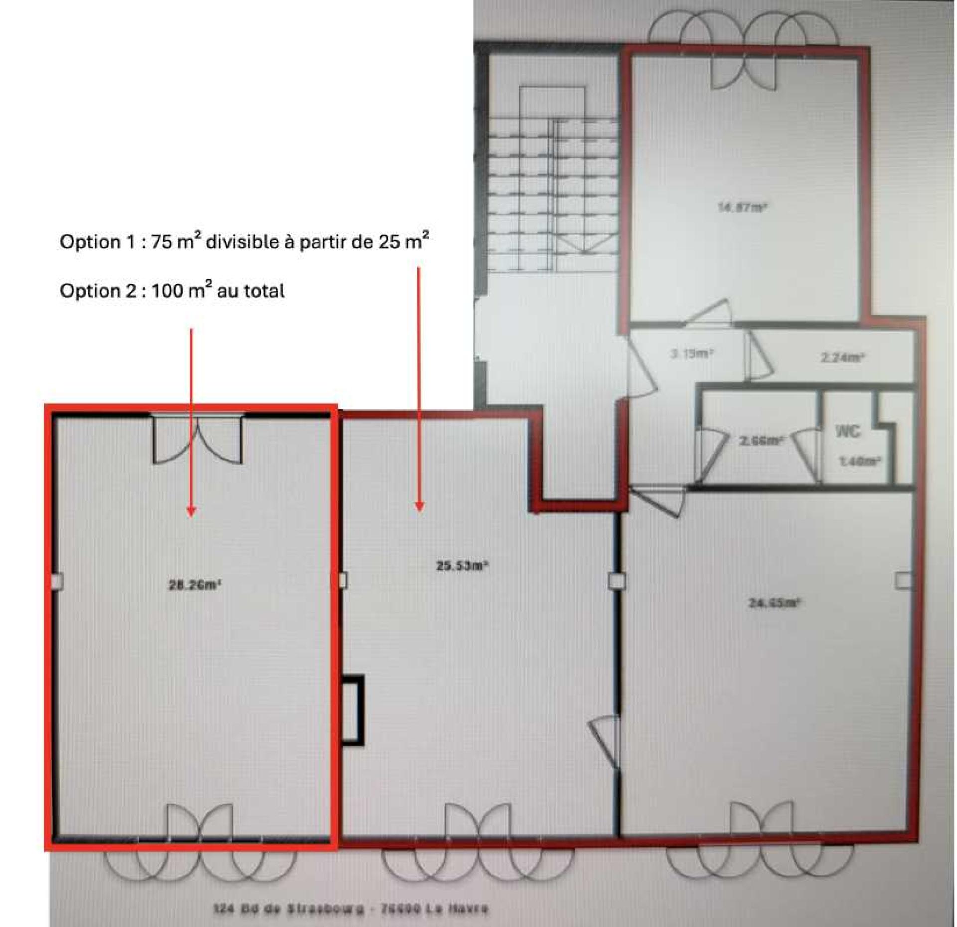LE HAVRE - BUREAUX A LOUER 100 M2 DIVISIBLE A PARTIR DE 75 M2